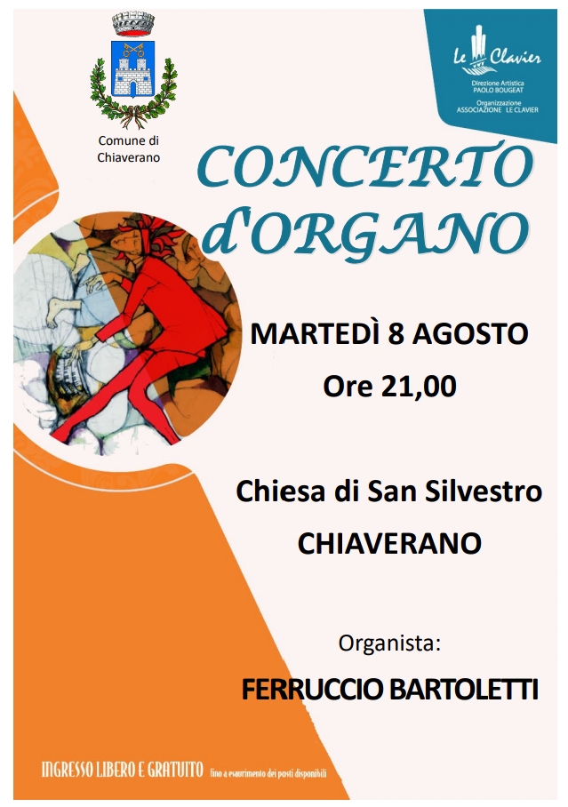 Si informa che martedì 8 agosto alle ore 21 presso la Chiesa Parrocchiale di San Silvestro si terrà un concerto d'organo con l'organista Ferruccio Bartoletti.